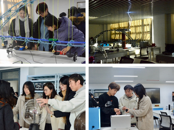 物理数据科学实验室以生活中的科学为主题,通过20余个互动实验装置将抽象理论具象化;磁悬浮列车模型动态演示电磁感应原理;特斯拉线圈上演人工闪电视觉奇观;超导材料实验展示迈斯纳效应;学生讲解团队采用现象-原理-应用三段式讲解法,使复杂知识通俗易懂。“原来物理这么有趣!”参与学生表示,通过亲手操作楞次定律演示仪、傅科摆等装置,对课本知识有了全新认知。实验室还设置了科学谜题墙,鼓励师生通过团队协作破解物理难题。