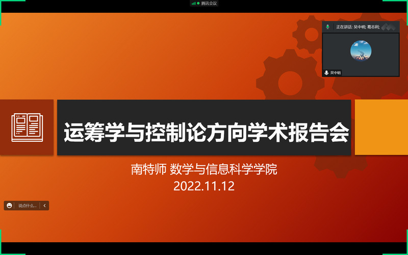 吴中明副教授开展题目为“Inexact first-order primal-dual methods for a class of saddle point problems”的学术报告。他介绍了“鞍点问题”以及原始对偶算法的基本原理,并提出其子问题计算可能较为困难从而影响算法的计算效率。吴中明副教授针对该问题提出两种易于实现的不精确准则,大大降低了子问题计算量。数值实验结果表明,使用这两种不精确准则的原始对偶算法的计算性能显著提升。最后,该准则被推广到了ADMM等主流算法,同样得到了较好的数值结果。