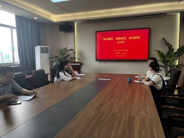 6月7日下午,数学与信息科学学院教师第一党支部开展了“牢记嘱托、感恩奋进、走在前列”集中交流研讨会。会议由教师第一党支部书记戴玥主持。