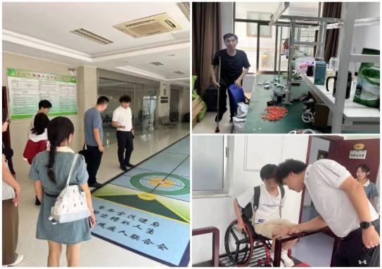 在法融益团队的努力与组织下,由丹阳市残联教育就业负责人景银山主任的带领和讲解下,团队在丹阳市残联进行了一次全面而深入的参观与交流活动。残疾人创业就业孵化基地筑梦空间是本次参观活动的核心之一,基地的设立旨在为残疾人提供一个良好的创业环境和就业机会,帮助他们实现自我价值,提升了残疾人的就业能力。通过工作人员的讲解,团队详细了解了每种辅具的用途、设计理念以及使用方法。在参观的最后阶段,法融益团队与相关负责人进行了问题访谈和交流活动,围绕残疾人权益保障、无障碍环境建设等问题进行了深入的探讨。通过与大家的交流,团队意识到社会各界对残疾人群体的理解与支持仍需加强。