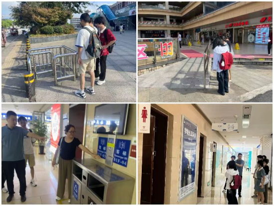 在去往丹阳市眼镜城过程中,志愿者们认真观察商城周围对于无障碍环境建设存在的问题,从而为后续改善工作提供科学依据,有助于制定明确的整改措施。团队成员走访商城各个区域,实地观察无障碍设施的布置情况,包括无障碍通道、残疾人卫生间、无障碍停车位等,以获取真实的环境评估信息。