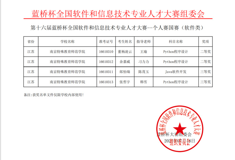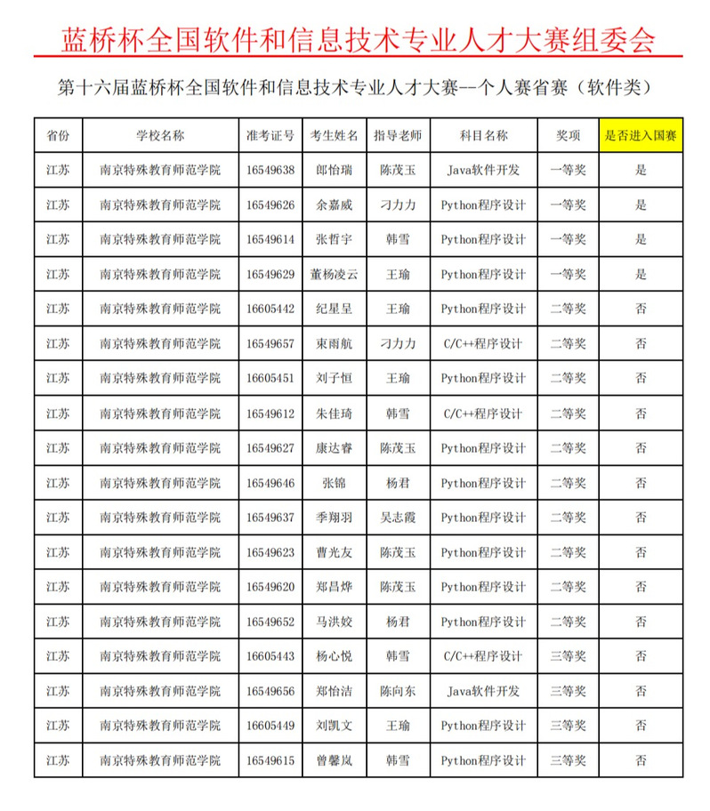 近日,全国第十五届蓝桥杯全国软件和信息技术专业人才比赛落下帷幕。我校人工智能学院学子个人及团队在此次赛事中取得全国赛获奖5项、江苏省赛获奖92项的优异成绩。成绩的取得受益于学校的高质量发展战略谋划和对人才培养的持续重视。尽管备赛过程比较长,但教师们始终辛勤付出、认真指导,学生积极准备、持续投入,比赛中展现出南特学子的优秀品质和良好的竞赛精神。