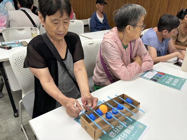 最令人期待的翻滚吧,乒乓球游戏中,志愿者们用矿泉水瓶盖和一次性筷子自制小玩具让残疾人朋友们锻炼手脑共用能力他们需要专注地控制手部动作,同时快速思考传递策略。残疾人朋友们脸上洋溢着专注又明亮的笑容,原本有些拘谨的人都被感染主动加入游戏,场面妙趣横生,不仅帮助残疾人朋友们增强身体康复和认知功能,还传递了资源再利用的环保理念。