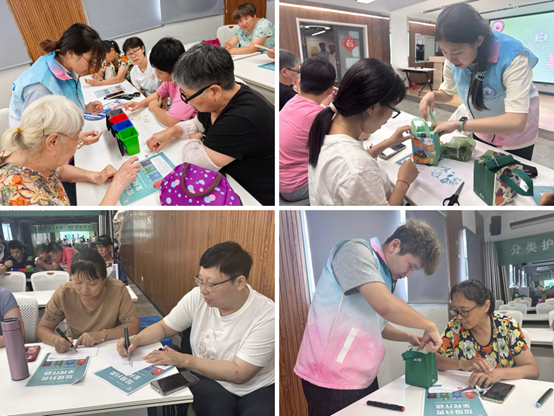 接着,丰富多彩的互动环节接踵而至。在变废为宝创意手工秀环节,残疾人伙伴与志愿者默契配合,将奶茶袋巧妙改造成实用的纸巾盒。一位残疾人朋友拿着自己参与制作的纸巾盒,自豪地说:我没想到原来废品也能变成这么漂亮有用的东西,这让我觉得自己很有创造力垃圾分类图标共绘活动中,大家拿起彩色马克笔,认真绘制四大类垃圾的分类图标。画可回收物标志时,大家仔细勾勒循环箭头的弧度;厨余垃圾的绿桶旁,不少人画了菜叶和鱼骨做点缀欢声笑语中,大家对垃圾分类的理解愈发深刻。