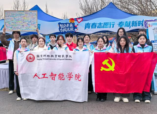 为深入学习贯彻党的二十届四中全会和习近平总书记致中国志愿服务联合会第三届会员代表大会贺信精神,弘扬“奉献、友爱、互助、进步”的志愿精神,3月11日,“博爱·青益汇”志愿服务集市暨2026年志愿服务月启动仪式在我校江宁校区小花园举行。人工智能学院紧扣“科技助残”核心主题,充分发挥人工智能学科专业优势,打造独具特色的“一院一品”志愿展位,以“技术赋能+沉浸体验”的创新模式,展现青年学子用智慧点亮特殊群体生活的责任担当。